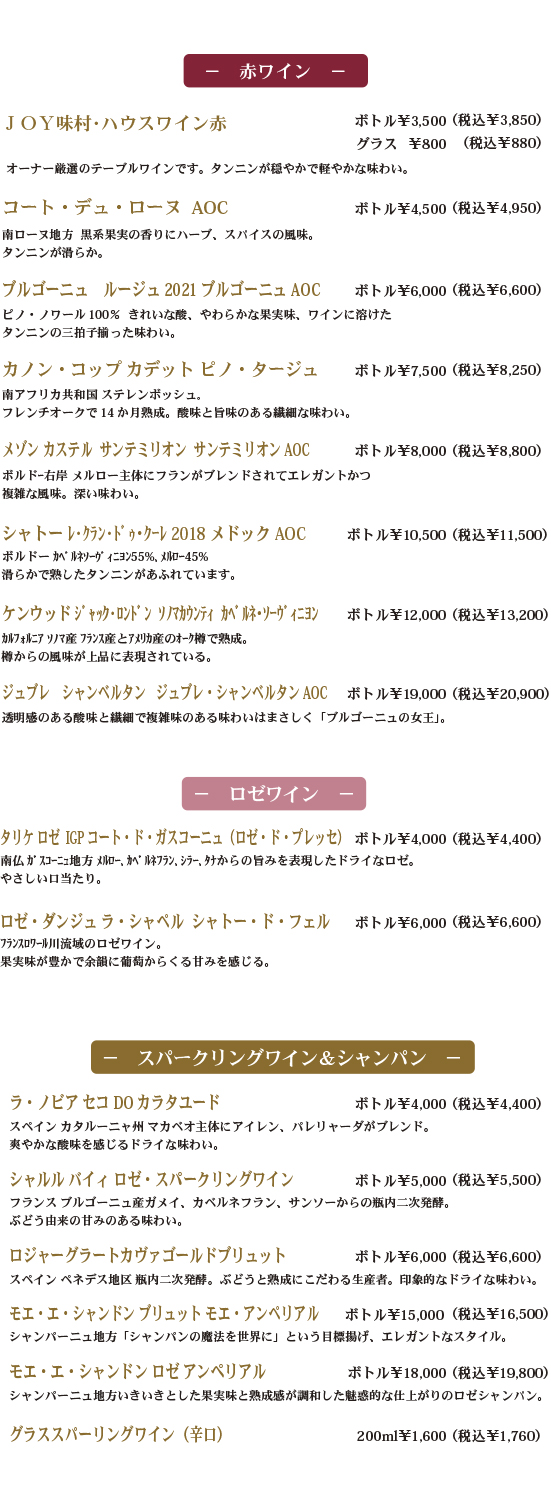 • ワインリスト